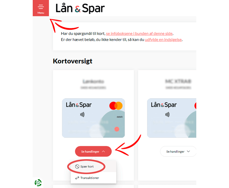 Ønsker du at spærre dit kort skal du gøre følgende: