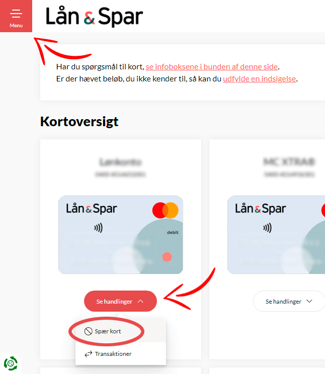 Ønsker du at spærre dit kort skal du gøre følgende: